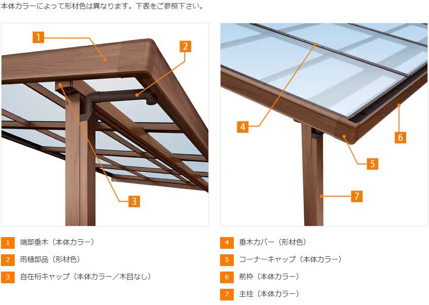 本体カラー(ラッピング形材色)と形材色の組合せ