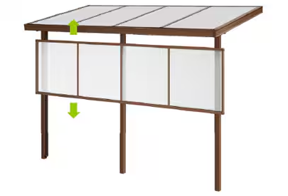 通りや隣家の窓に面した場所にテラスを設置する場合など、スクリーンを取付ければ、室内の様子や洗濯物をさりげなく隠せます。雨や風の吹き込み防止にも効果的です。