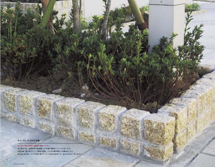 ピンコロ石は、立方体に加工された天然石で、主に御影石が使われます。高い耐久性と滑りにくさを備えており、アプローチや駐車場、花壇の縁取りなど外構・エクステリアに幅広く利用されています。自然な風合いと豊富なカラーバリエーションで、和風・洋風どちらのデザインにも調和し、機能性と美観を両立できる石材です。