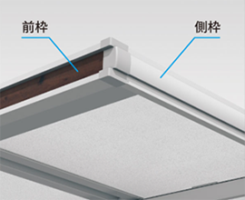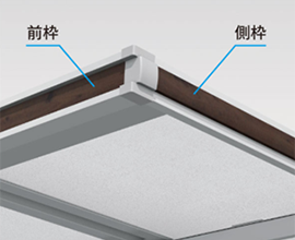 前枠・樋はフラットラインを強調したH形鋼風形状で住宅外観の水平ラインにスッキリとフィット。