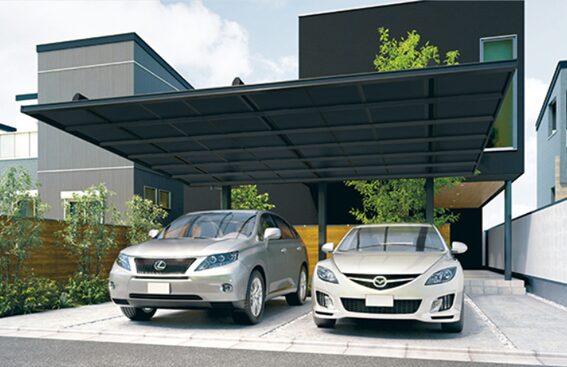 中骨レスの屋根構造により、すっきりとした見た目と高級感を演出。さらに両側支持タイプで車の出入りがしやすく、実用性も抜群です。