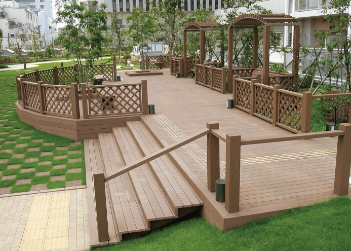 意匠性に優れ、公共施設における多様なデザインニーズに対応可能な、コントラクト向けに最適なウッドデッキ材です。