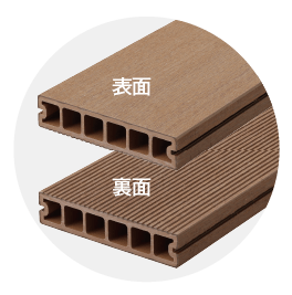両面使用可能な床板は、メインスペースに表面、階段やスロープなどに滑りにくい裏面と施工場所に合わせて選べます。