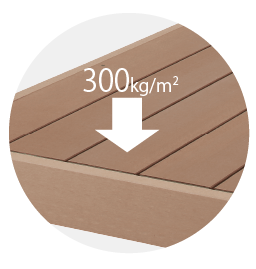 公共施設でのあらゆるデザインを想定し、耐荷重は300kg/㎡。腐朽による強度低下の心配もありません。