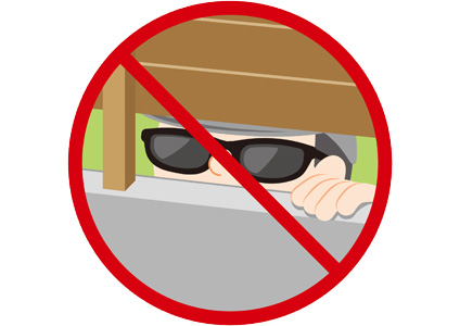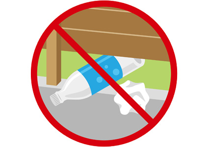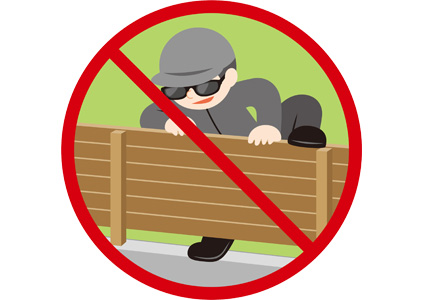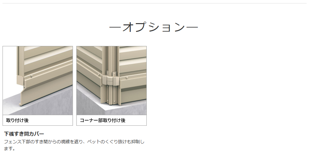 下桟すき間を15mmとすることで、外部からの足掛かりを乗り越えにくくし、外部からの視線、ペットの潜り抜け、ペットボトルなどのゴミの投棄を軽減します。