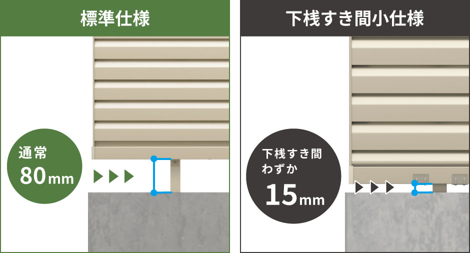 下桟すき間カバー(オプション)をつける必要がない「下桟すき間小タイプ」