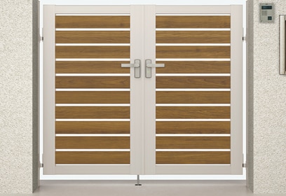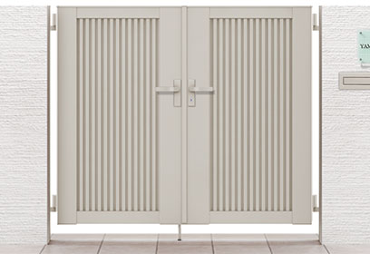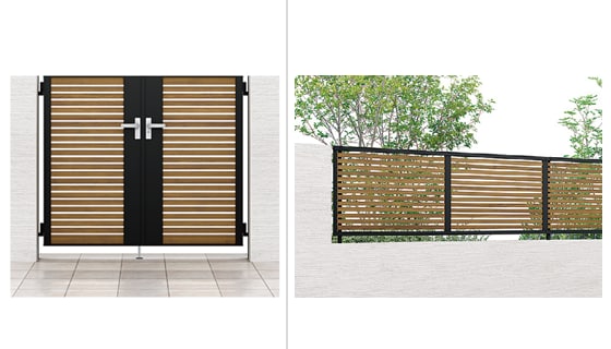 フェンスABとコーディネートできる木調カラーの門扉をラインアップ。外構のアクセントにもなり、ベーシックな中にも選択の幅が広がります。